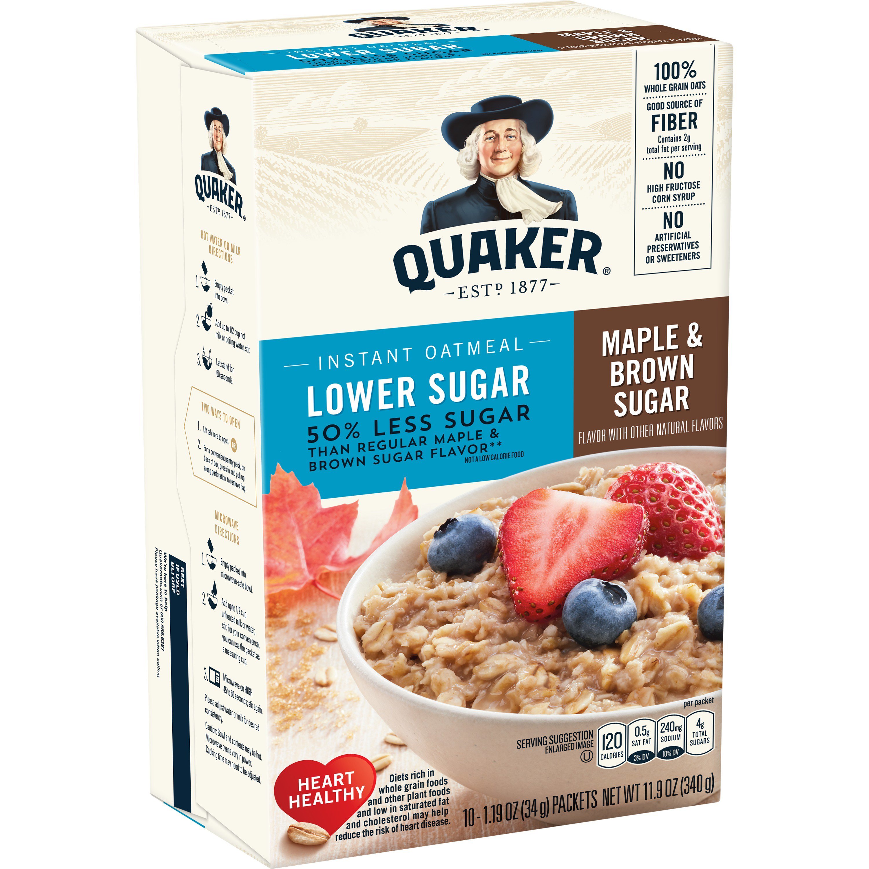Jump to the 1200 calorie meals; The crunchy corn cereal is low fat and contains no cholesterol, yet has seven vitamins— including iron, zinc, and 100% of the daily recommended value of folic acid. Quaker instant oatmeal lower sugar maple & brown sugar They are made with 5g of whole grains, so you know you're making a smart choice. If you are like me, you love printable meal plans!